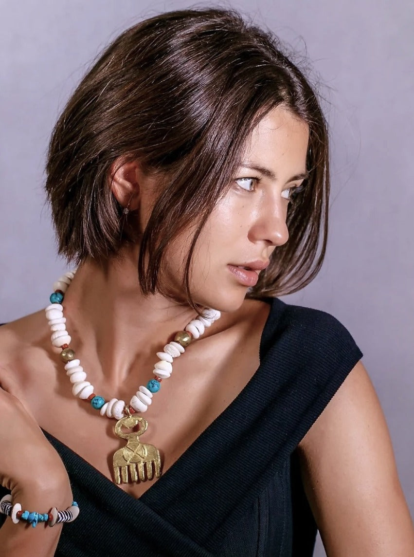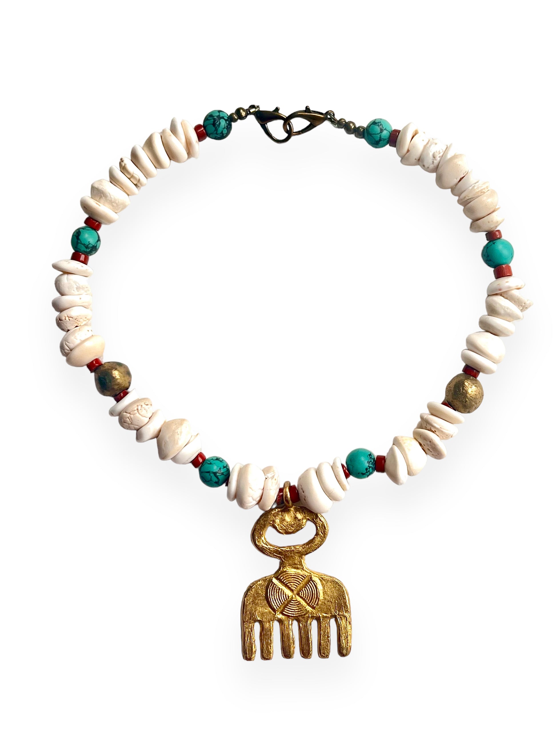Nala Statement Necklace. African Brass, Sea Shells, Howlite.